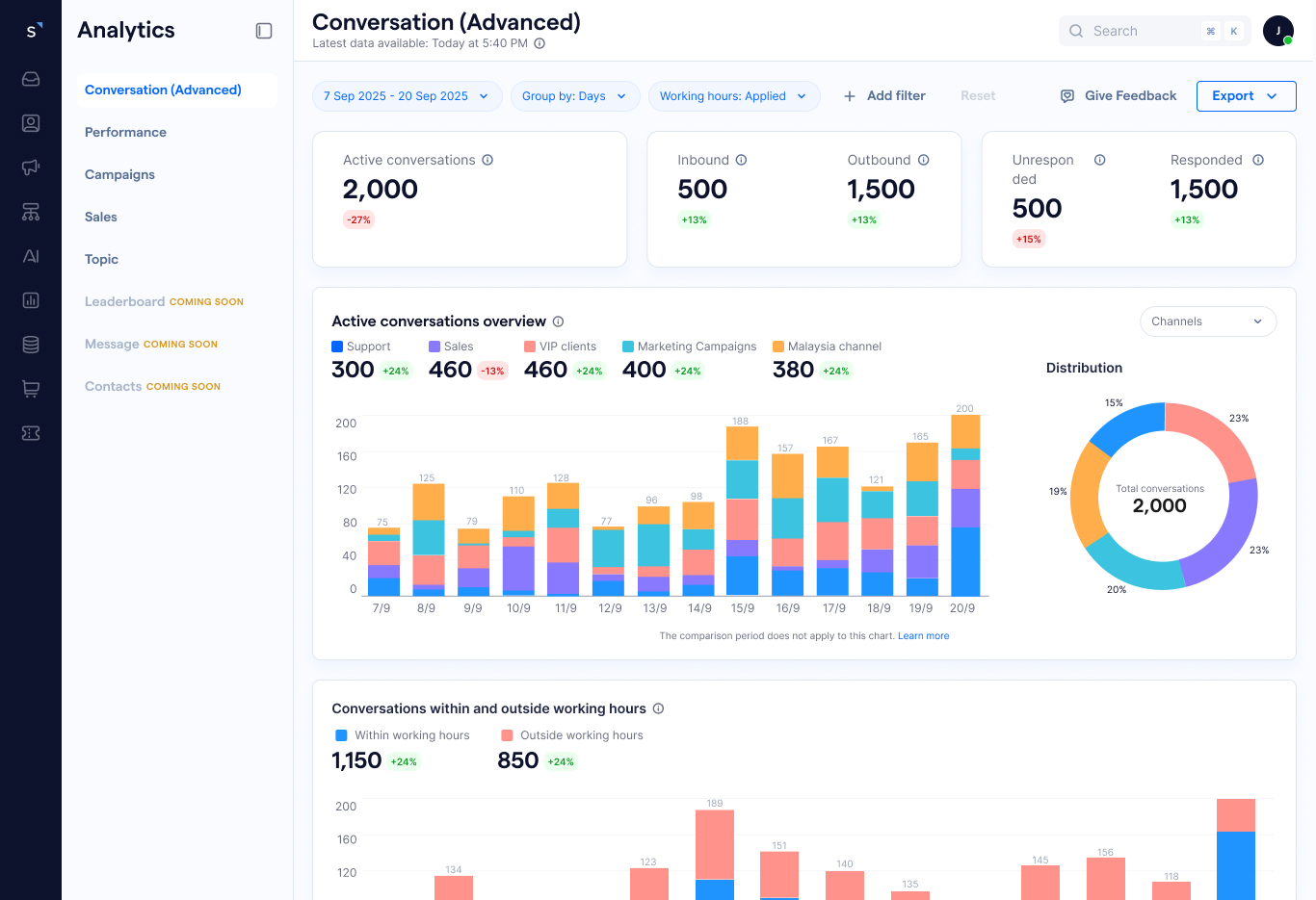 As companies scale digital engagement, analytics has become table-stakes across omnichannel platforms. Market leaders now offer role-based dashboards, flexible filters, and real-time data. SleekFlow's existing analytics lagged these standards significantly.